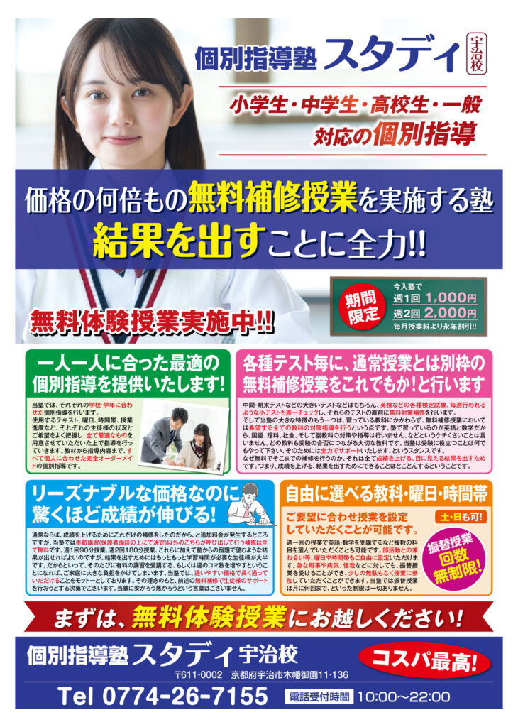 個別指導塾 スタディ 宇治校へのお問い合わせ